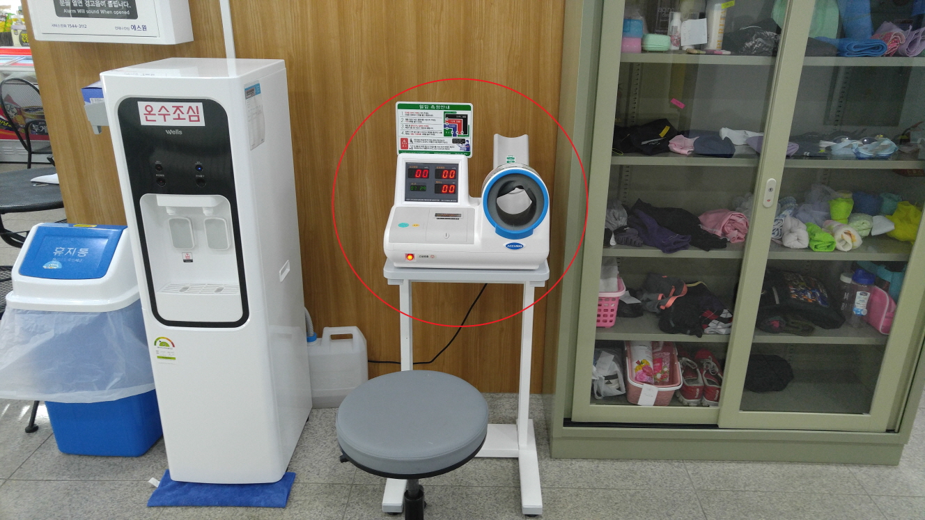 다름 아니오라 헬스클럽 장 내에서 항시 회원들이 자기 혈압 관리를 할 수 있게끔 혈압계를 비치하여 필요 시 항상 혈압 측정을 할 수가 있었는데, 어느 날 철거해 1층 로비에 옮겨져 있더라고요? 헬스클럽 장 내 혈압 측정기 비치해 있을 때는 부담 없이, 시간과 장소에 구분없시 운동 중 또는 운동 전, 후 이용할 수가 있었는데 현재로 선 1층 로비까지 내려갔다 올라와야 하는 상태이고, 헬스 복 차림으로 돌아다니기도 좀 그렇고 해서요?