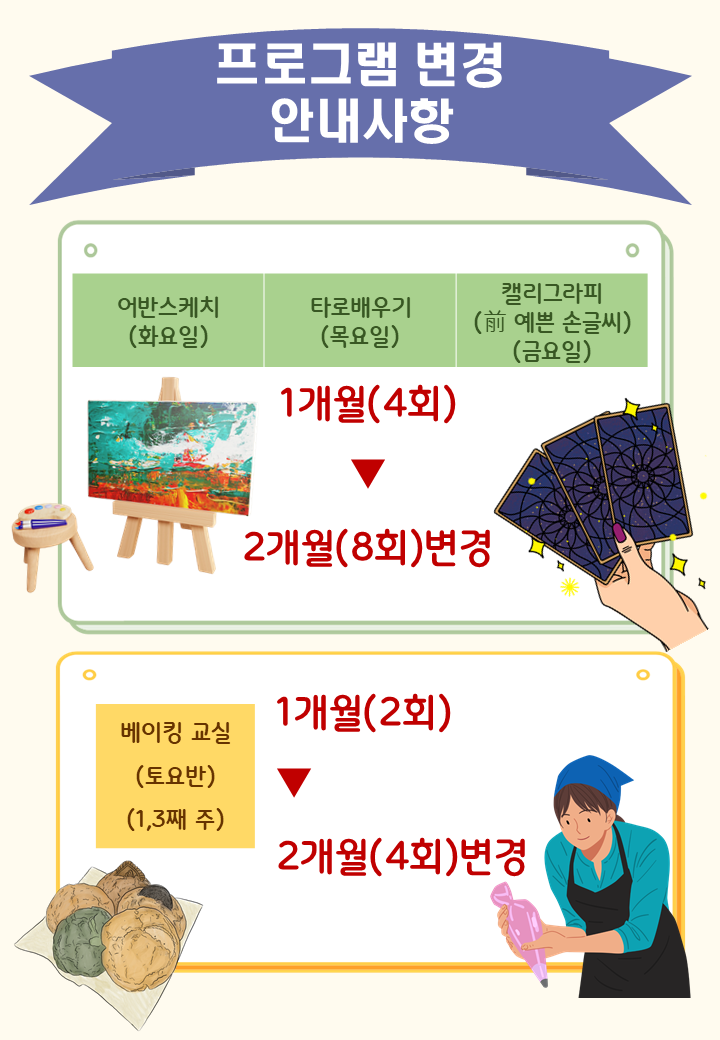 프로그램 변경 안내 사항 작성자 주안스포츠문화센터 등록일자 2024년 12월 6일 9시 34분 15초 조회 475 KakaoTalk_20241206_093109300_01.jpg [ Size : 101.03KB , Down : 555 ] 미리보기 다운로드 프로그램 변경 안내1.png [ Size : 267.94KB , Down : 472 ] 미리보기 다운로드 목록보기
