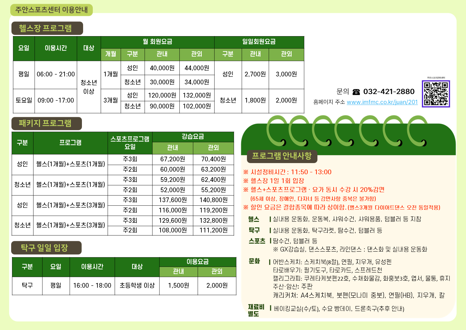 주안스포츠문화센터 5월 프로그램 안내 작성자 주안스포츠문화센터 등록일자 2025년 4월 18일 11시 50분 21초 조회 229 슬라이드1.PNG [ Size : 197.09KB , Down : 156 ] 미리보기 다운로드 슬라이드2.PNG [ Size : 183.33KB , Down : 130 ] 미리보기 다운로드 목록보기