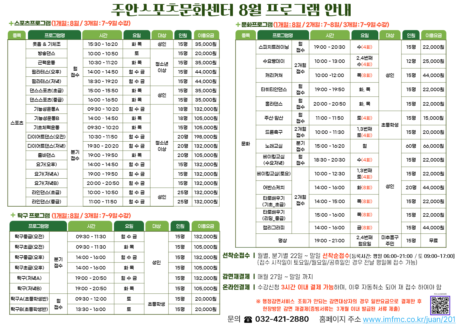 주안스포츠문화센터 8월 프로그램 안내 작성자 주안스포츠문화센터 등록일자 2025년 7월 18일 16시 6분 29초 조회 201 슬라이드1.PNG [ Size : 192.27KB , Down : 241 ] 미리보기 다운로드 슬라이드2.PNG [ Size : 162.62KB , Down : 216 ] 미리보기 다운로드 목록보기
